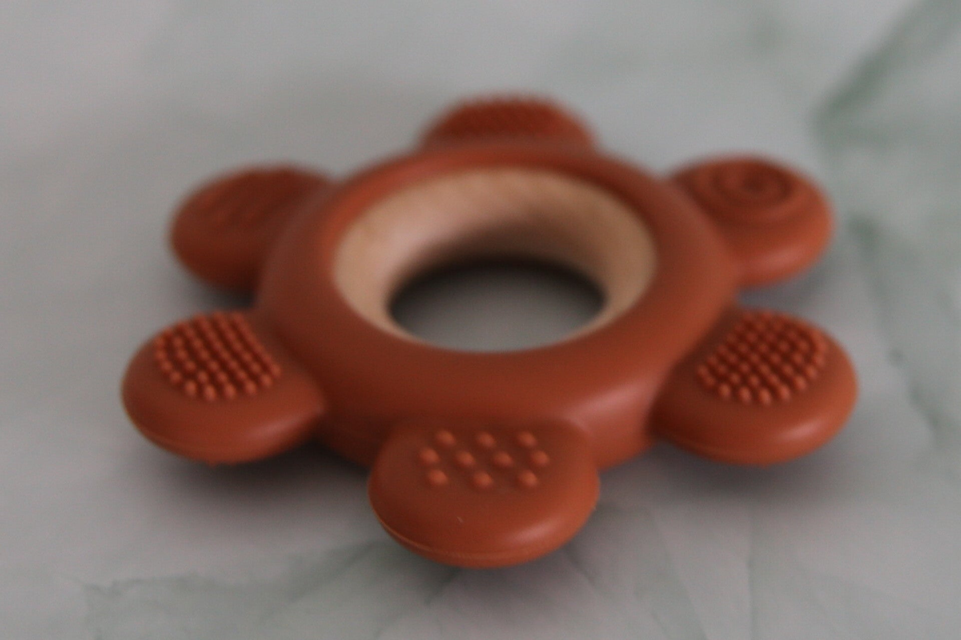 Een prachtige bijtring die je kindje goed vast kan houden en in het mondje kan stoppen door de uitstekende vormpjes.